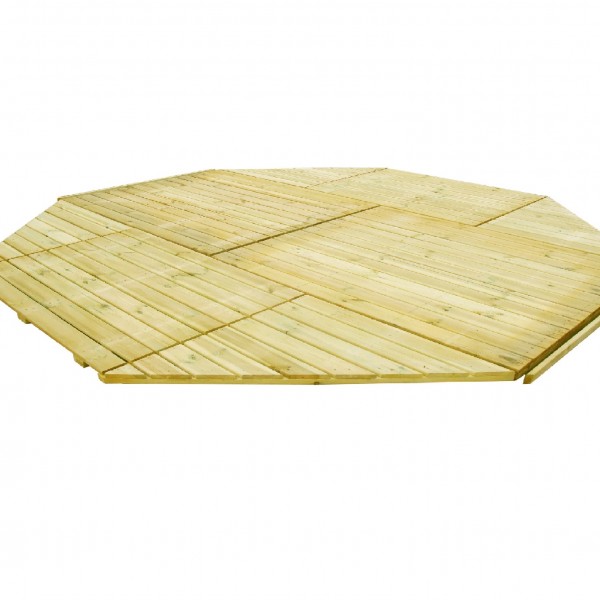 Niniejsza podłoga do altany ogrodowej, jest produktem idealnie pasującym do Naszej ofertowej altany ośmiokątnej o nr indeksu 50300. Umieszcza się ją na ziemi i swoim kształtem idealnie obejmuje wnętrze altany. Składa się z desek o grubości 18 mm zamocowanych na masywnej ramie o gr. 24mm.