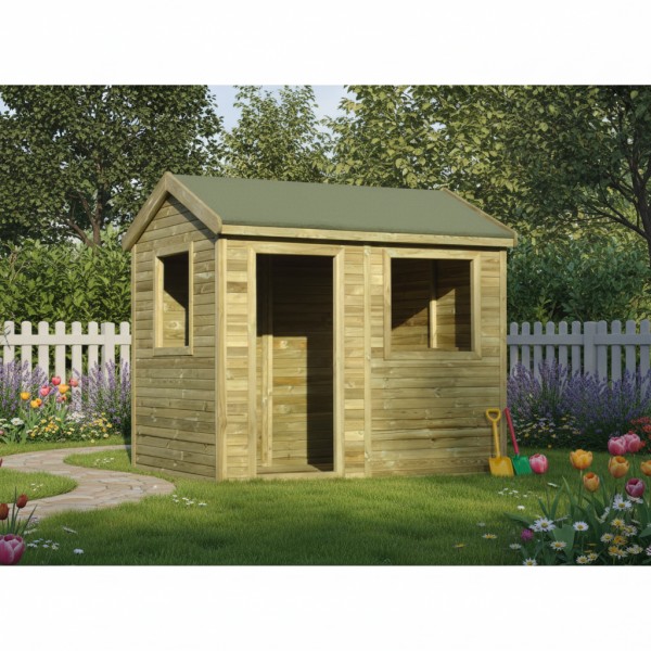 Domek dla dzieci Marcin to wspaniały pomysł na zagospodarowanie placu zabaw. Domek zapewni wspaniałą zabawę mniejszym jak i większym dzieciom. Domek Marcin to stabilna konstrukcja wykonana z wyselekcjonowanego drewna sosnowego, ściany z boazerii. Podłoga wykonana z płyty OSB. Dach wykonany z deski pióro-wpust.