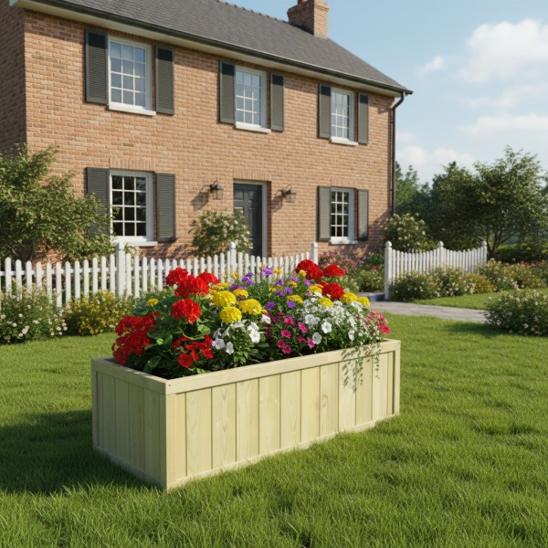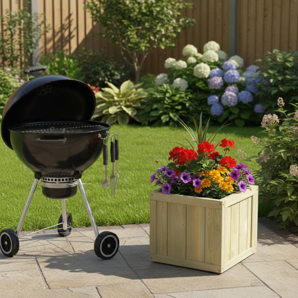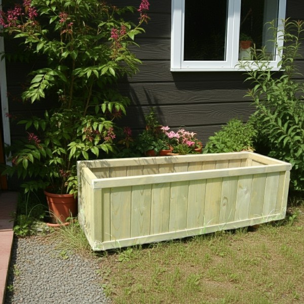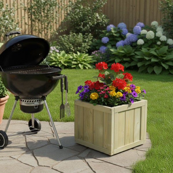 Wewnątrz donicy znajduje się wyściółka z agrowłókniny, która zapewnia szczelność i chroni przed rozsypywaniem ziemi, co ułatwia sadzenie roślin i utrzymanie porządku. Dodatkowo donica jest impregnowana ciśnieniowo, dzięki czemu drewno jest odporne na wilgoć, pleśń i szkodniki, co zapewnia długotrwałe użytkowanie w każdych warunkach atmosferycznych.