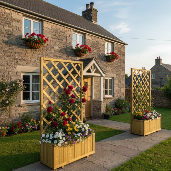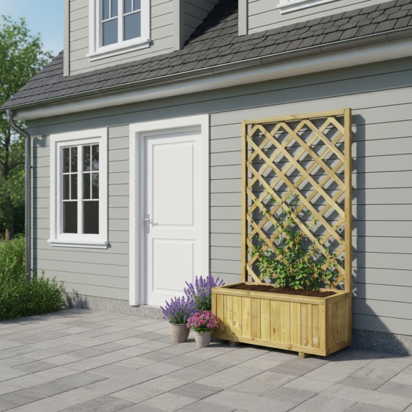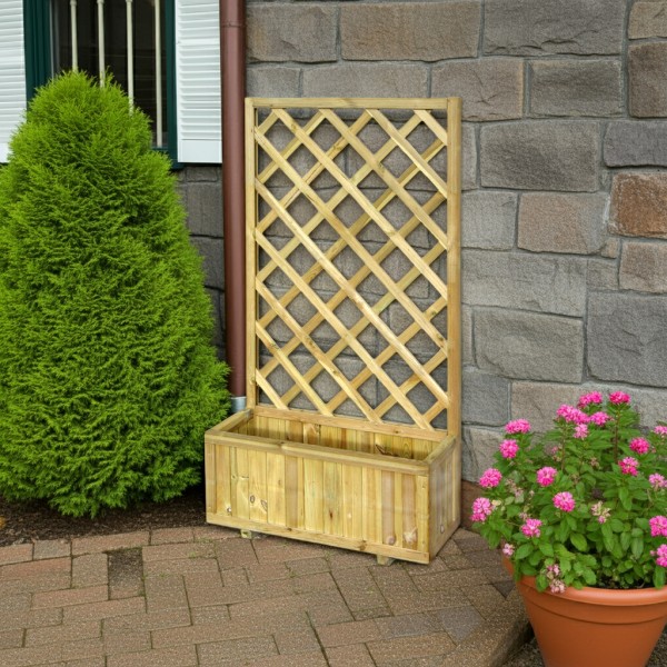 Donica włoska z drewna to elegancka i funkcjonalna propozycja do ogrodu, tarasu czy balkonu. Składa się z doniczki połączonej z kratką do pnączy, co umożliwia efektowną ekspozycję roślin pnących, takich jak powojniki, róże pnące czy bluszcz.