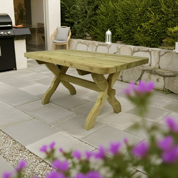 Stół prostokątny Miłosz o wymiarach 140 × 78 cm to element zestawu wyjątkowej jakości mebli ogrodowych ze świerku suszonego. Grube blaty i siedziska o grubości 50 mm nadają stołowi masywności, stabilności i elegancji, zapewniając komfortowe użytkowanie nawet w miejscach narażonych na wiatr i zmienne warunki atmosferyczne.