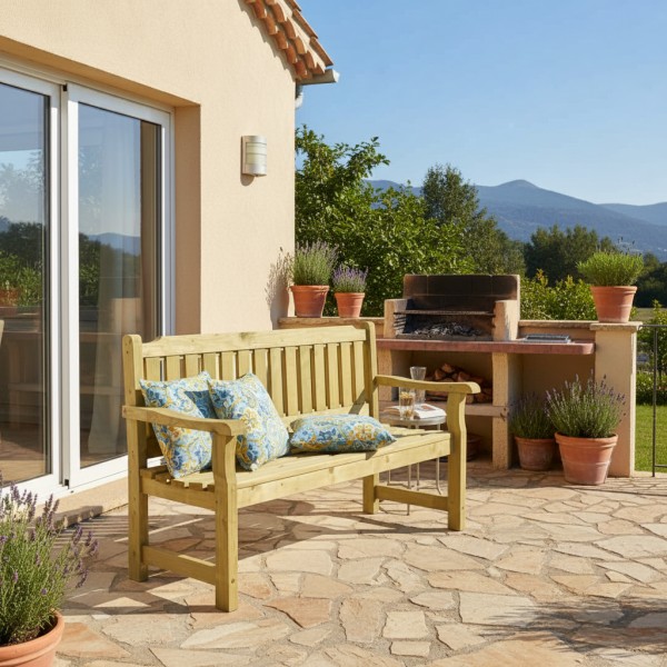 Wykonana z drewna świerkowego i impregnowana, ławka Cortina jest odporna na wilgoć, pleśń i szkodniki, co gwarantuje wielosezonowe użytkowanie. Rustykalny wygląd drewna pięknie komponuje się z innymi meblami z serii Cortina, tworząc spójny i elegancki zestaw ogrodowy.