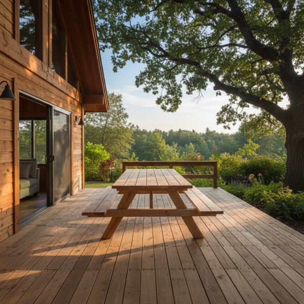 - Naturalny wygląd drewna modrzewiowego – elegancja i rustykalny styl
