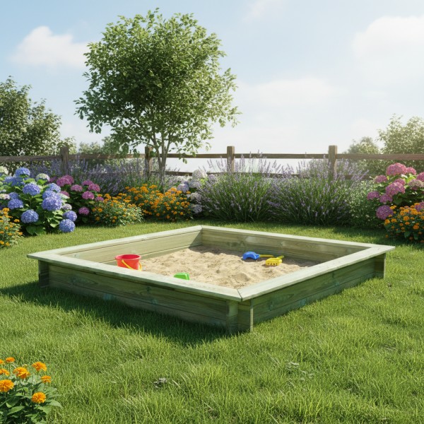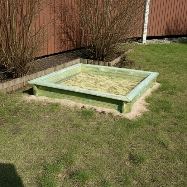 W każdym ogrodzie, gdzie bawią się małe dzieci niezbędna jest piaskownica. Piaskownica wykonana jest z drewna sosnowego. Elementy wykonane są z dużą starannością ze względu na małych użytkowników. Deski sa heblowane i szlifowane. Pisakownica występuje w dwóch rozmiarach120x120 cm i 150x150 cm. Dzięki możliwości wyboru rozmiaru można dostosować piaskownice do miejsca ,w którym zostanie zamontowana. Osobno można dokupić dekiel.