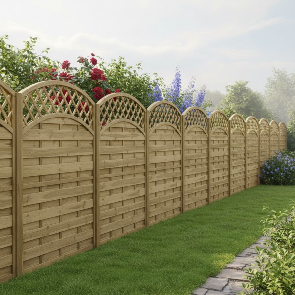 Płot Ula-wypukła/wklęsła w dolnej części wypełniony jest listwami ryflowanymi (wzdłużne rowki), które zwiększają jego walory estetyczne i niwelują negatywny wplyw warunków pogodowych na drewno. W górnej części wypełnieniem jest subtelna kratka ograniczona z góry i z dołu dwoma łukami. Płot gwarantuje doskonałą przesłonę Twojej posesji, ogrodu lub patio. Jego konstrukcja jest wystarczająco solidna, aby mógł byc wykorzystany jako samodzielne ogrodzenie - za pomocą łączników kątowych i kompletu wkrętów przykręcamy go do kantówek (słupków) zakotwiczonych w gruncie za pomocą odpowiednich kotew wbijanych/podstaw słupka lub stop słupka (wszystkie akcesoria również dostępne w naszym sklepie). Jego zaletą jest łatwy i szybki montaż (demontaż), estetyczne wykończenie, szeroki wybór rozmiarów ułatwiający optymalne wypełnienie przestrzeni. Szeroki asortyment pozwala ciekawie skomponować ogrodzenie jako "fala" jak na zdjęciu głównym.