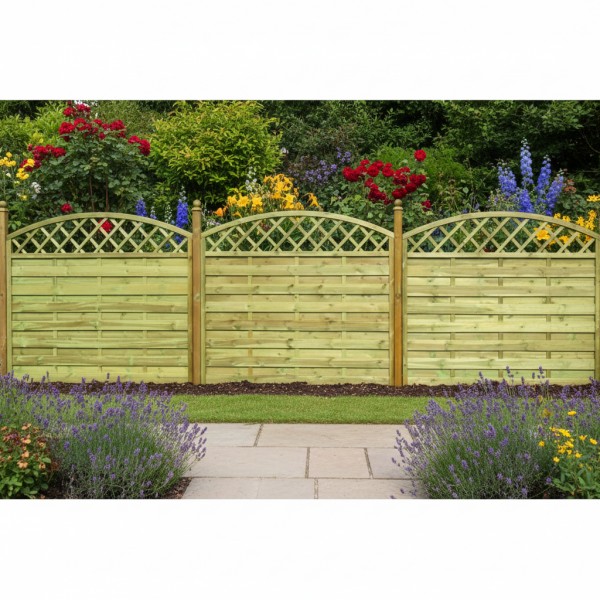Płot Olga w dolnej części wypełniony jest listwami ryflowanymi (wzdłużne rowki), które zwiększają jego walory estetyczne i niwelują negatywny wplyw warunków pogodowych na drewno. W górnej części wypełnieniem jest subtelna kratka zakończona łukiem u góry. Płot gwarantuje doskonałą przesłonę Twojej posesji, ogrodu lub patio. Jego konstrukcja jest wystarczająco solidna, aby mógł byc wykorzystany jako samodzielne ogrodzenie - za pomocą łączników kątowych i kompletu wkrętów przykręcamy go do kantówek (słupków) zakotwiczonych w gruncie za pomocą odpowiednich kotew wbijanych/podstaw słupka lub stop słupka (wszystkie akcesoria również dostępne w naszym sklepie). Jego zaletą jest łatwy i szybki montaż (demontaż), estetyczne wykończenie, wybór rozmiarów ułatwiający optymalne wypełnienie przestrzeni.